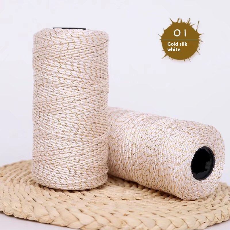 Kit d'accessoires de tricot et crochet DIY faits main, fil 100% coton haute ténacité, fil de soie glacée, soie tressée teinte or pour chapeaux, sacs et housses de tasses