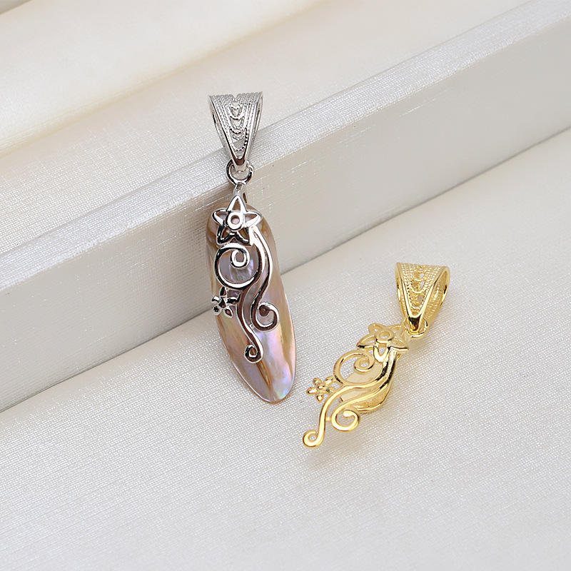 Collier pendentif en argent S925 fait main avec perle baroque, perle irrégulière simple et lâche avec accessoire creux, numéro d'article 1393
