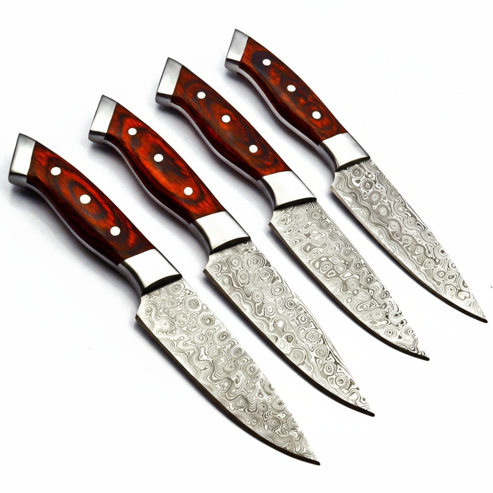 Ensemble de 4 couteaux de chef damas faits à la main, ensemble de couteaux de cuisine professionnels en bas quantité minimale de commande