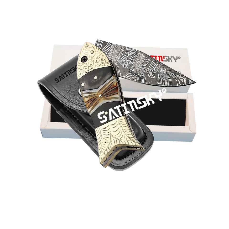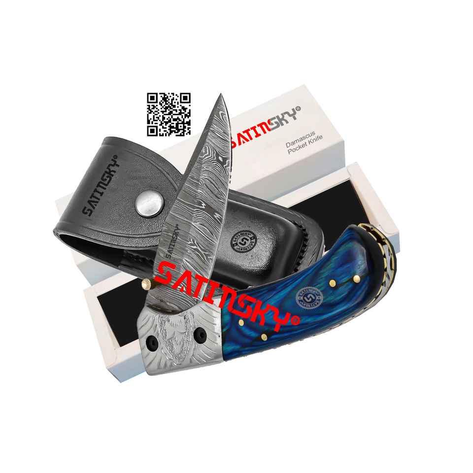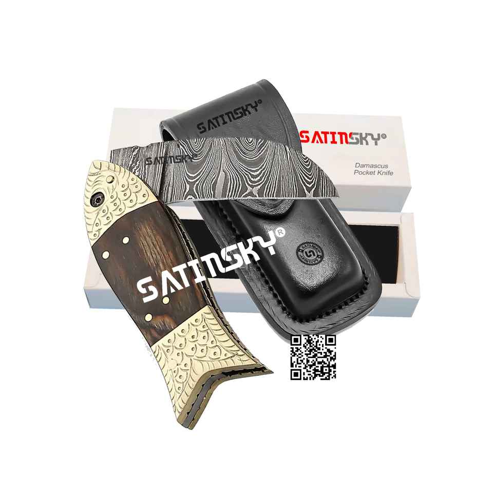 Couteau de poche damas à la main gaine couteau pliant cadeau de chasse