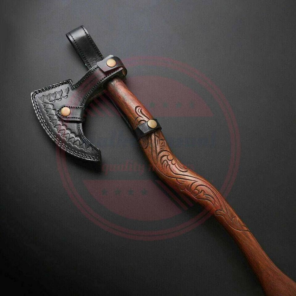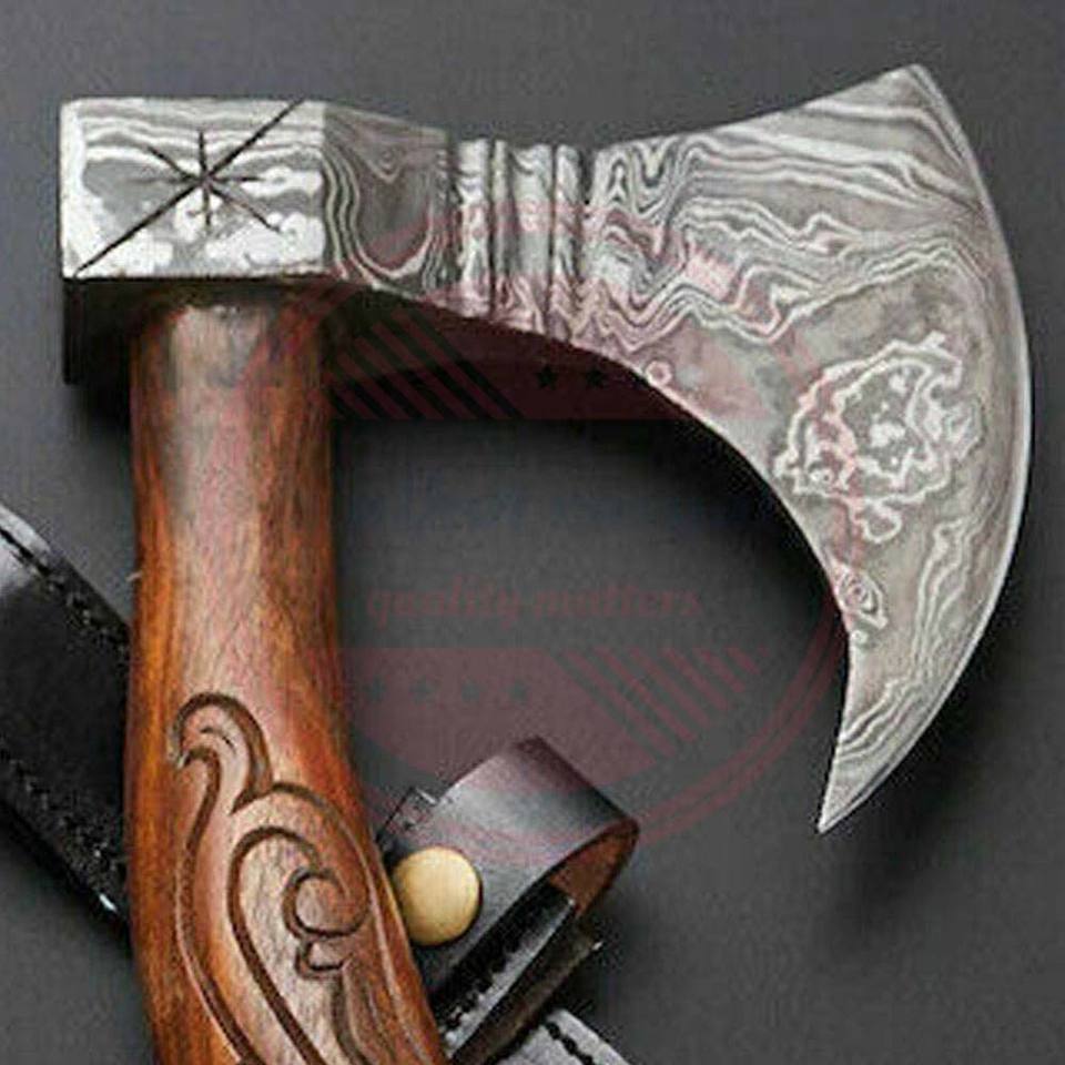 Haches en acier damassé faites à la main Haches damassées polyvalentes avec étui en cuir et manche en bois Hachette Tomahawk Axes