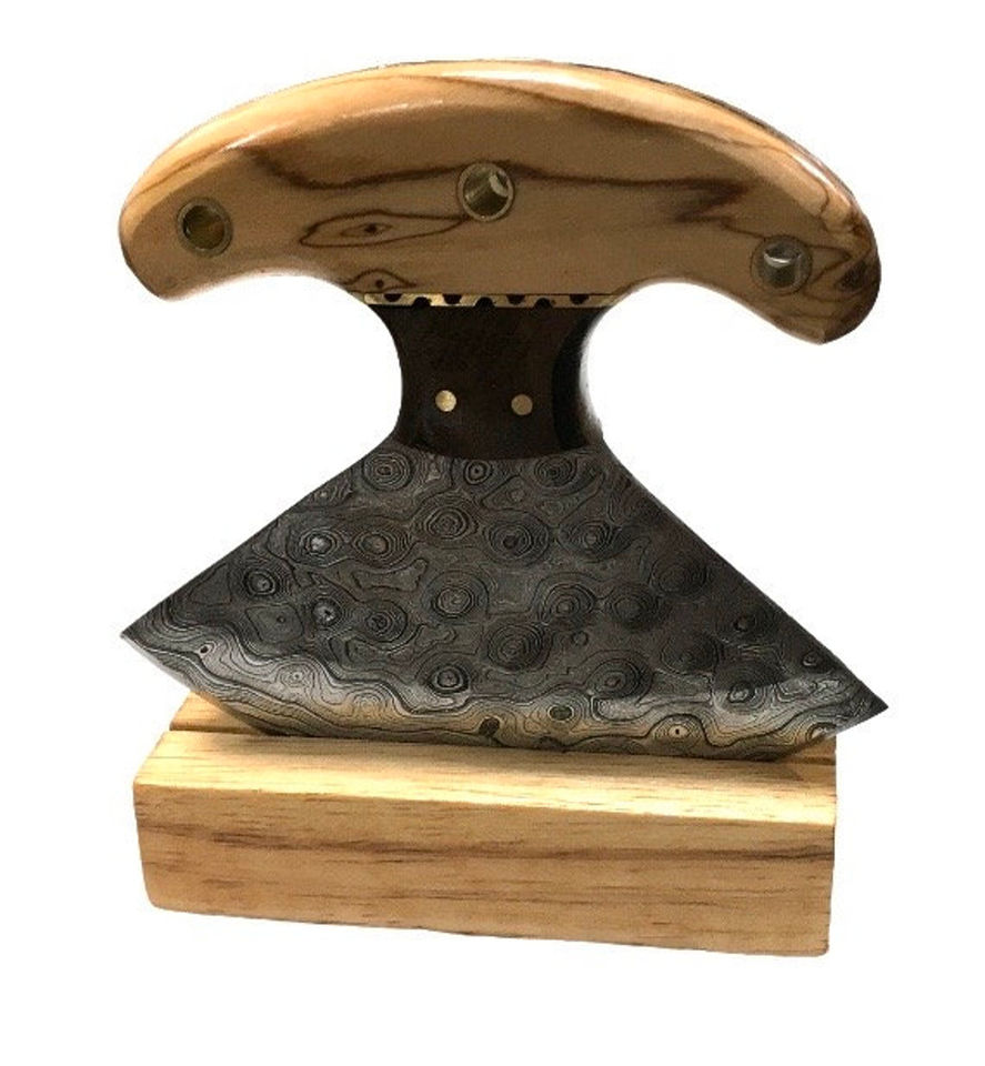 Handmade Damascus Steel Custom Raindrop Blade Ulu Knife with Wood Handle Kitchen Knives Set in Leather Sheath DIY Grade OEM