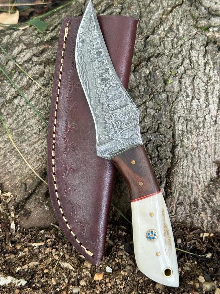 Couteau à dépecer de chasse à lame fixe en acier damas fait à la main avec poignée personnalisée gaine en cuir Support OEM