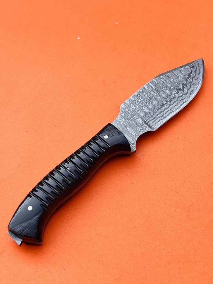 Couteau de chasse et d'écorchage en acier damas fait à la main avec gaine en cuir Options OEM personnalisables disponibles