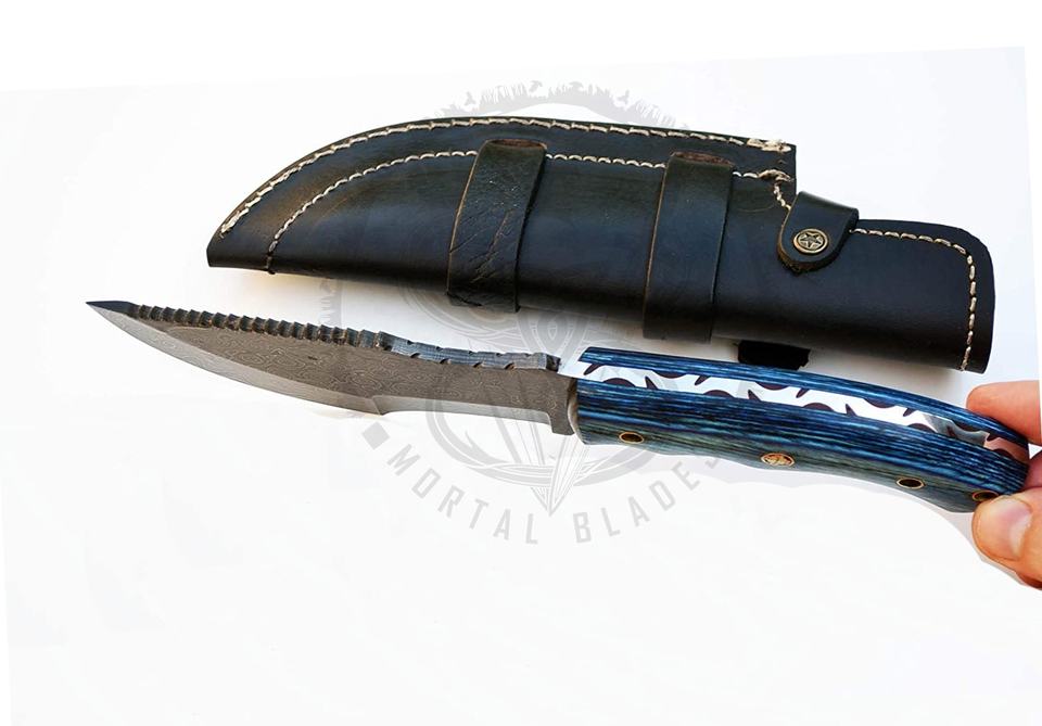 Handmade Damascus Steel Tracker Knife Fixed Blade Outdoor Hunting Camping Knives With Quality Leather Sheath