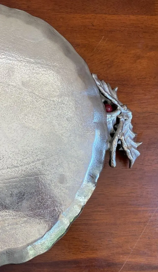 Plateau de service décoratif artisanal pour desserts avec poignée unique, ustensiles de cuisine sûrs pour les restaurants, les hôtels, les plats et les assiettes de table