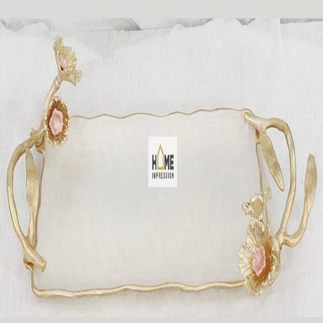 Plateaux de luxe décoratifs faits à la main Plateaux en métal de décoration design pour hôtel et restaurant Fournitures de table