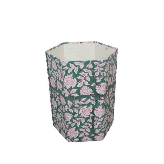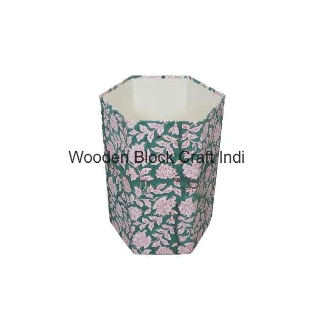 Poubelle décorative ouverte faite à la main en carton PP imprimé au bloc, avec enveloppe en tissu 100 % coton.