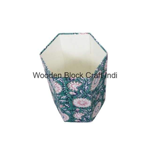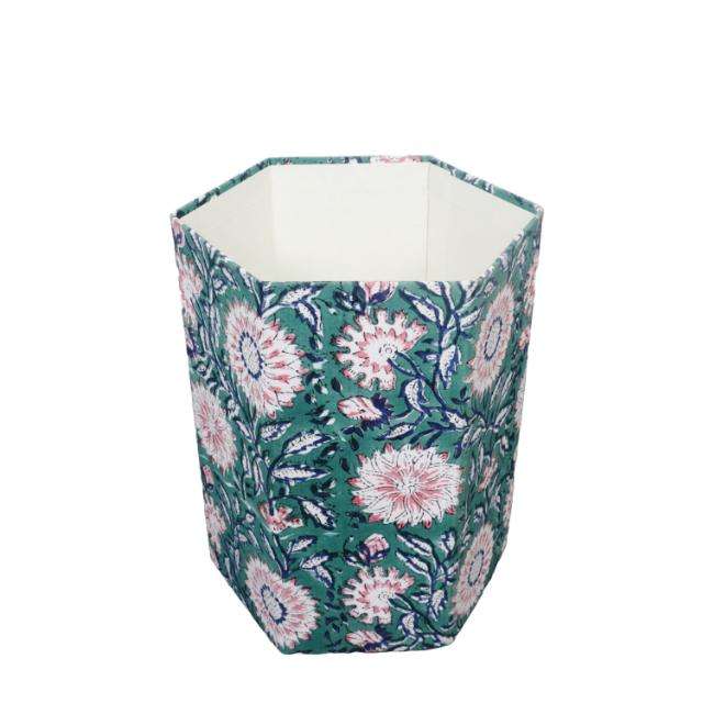 Poubelle décorative ouverte faite à la main en carton PP imprimé au bloc, avec enveloppe en tissu 100 % coton.