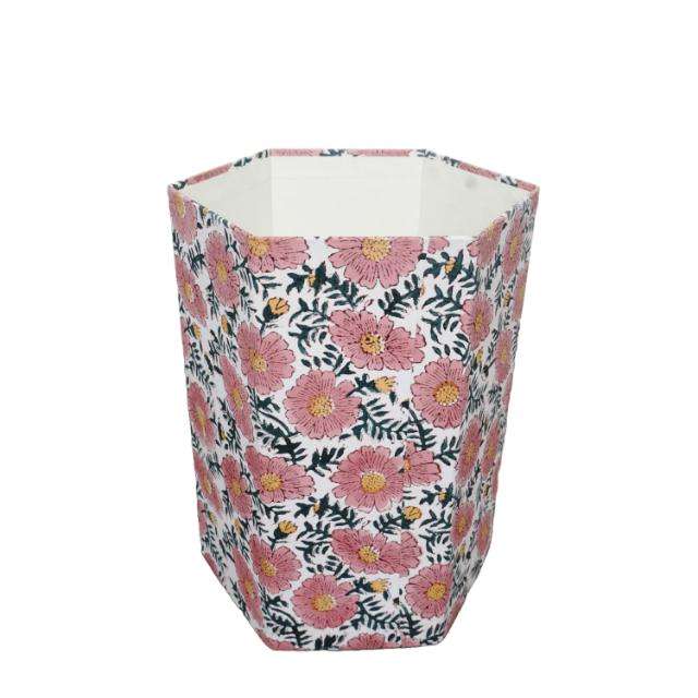 Poubelle décorative ouverte faite à la main en carton PP imprimé au bloc, avec enveloppe en tissu 100 % coton.