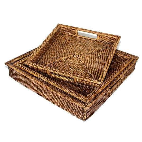 Plateau de service en jute de rotin décoratif fait à la main avec finition en incrustation d'os Ensemble de 3 plateaux de serveur de nourriture de forme arrondie