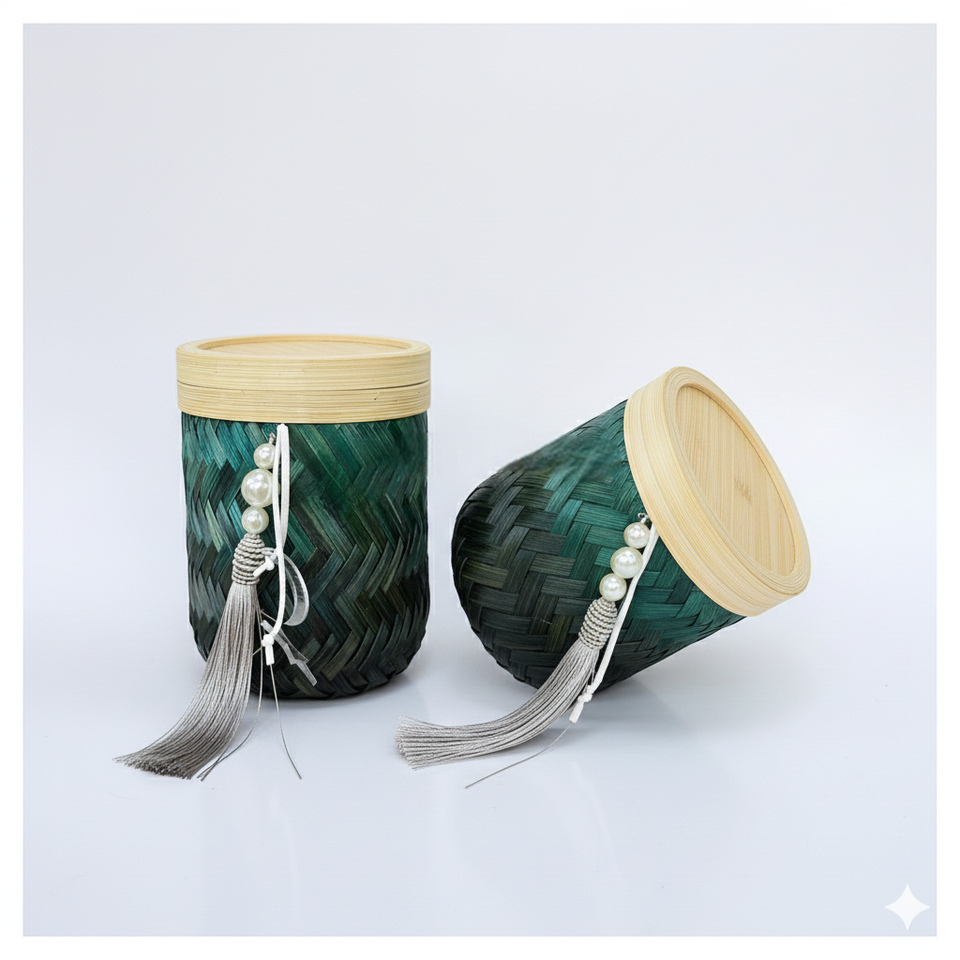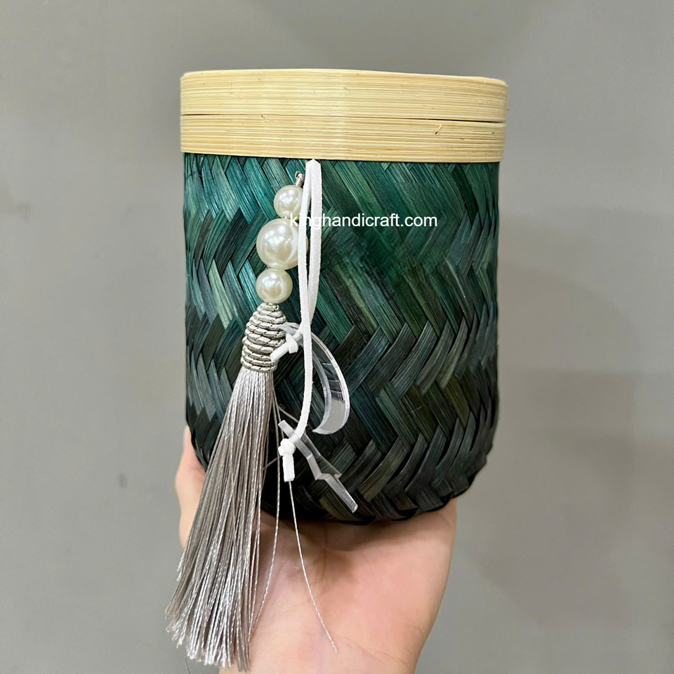 Panier de rangement artisanal de luxe pour le Ramadan et l'Aïd, motifs islamiques artistiques, artisanat haut de gamme personnalisé, écologique, moderne, rond