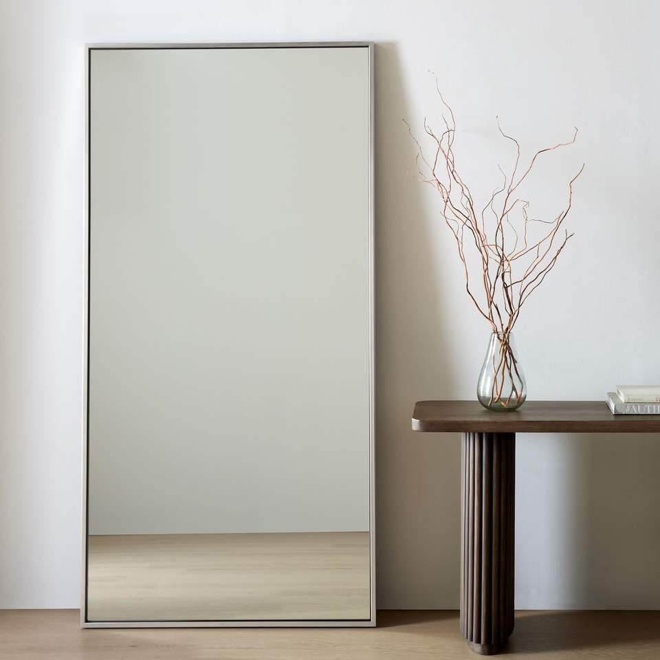 Cadre de miroir sur pied de forme rectangulaire fait main en métal de couleur noire pour la décoration intérieure