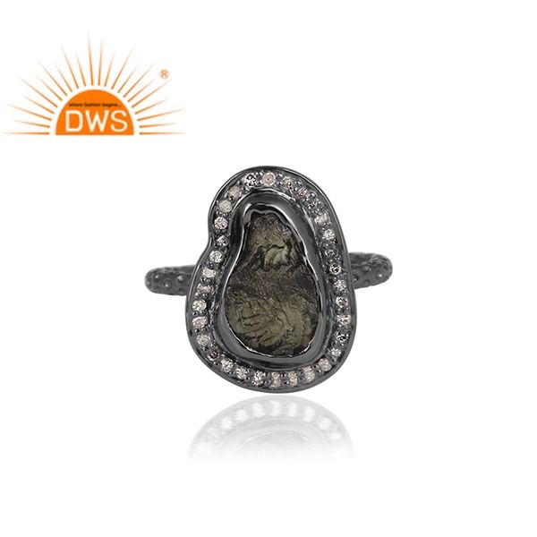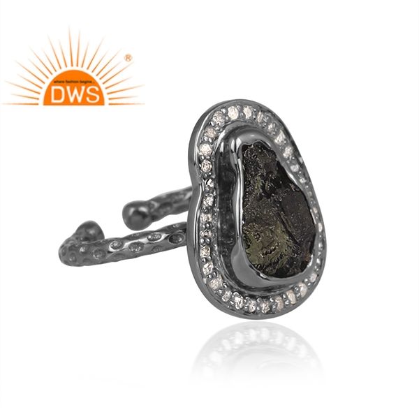 Bague ajustable en argent sterling avec design fait à la main, moldavite brute naturelle et diamant, fabricant de bijoux