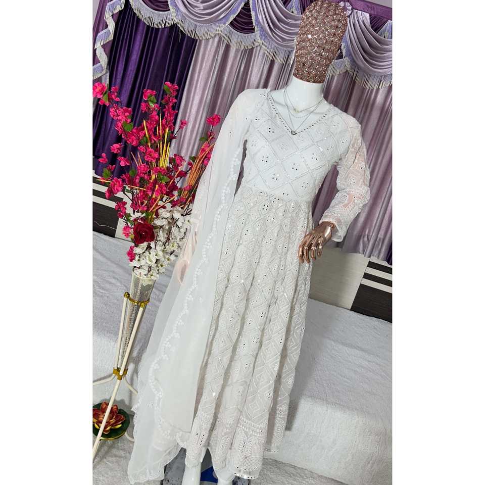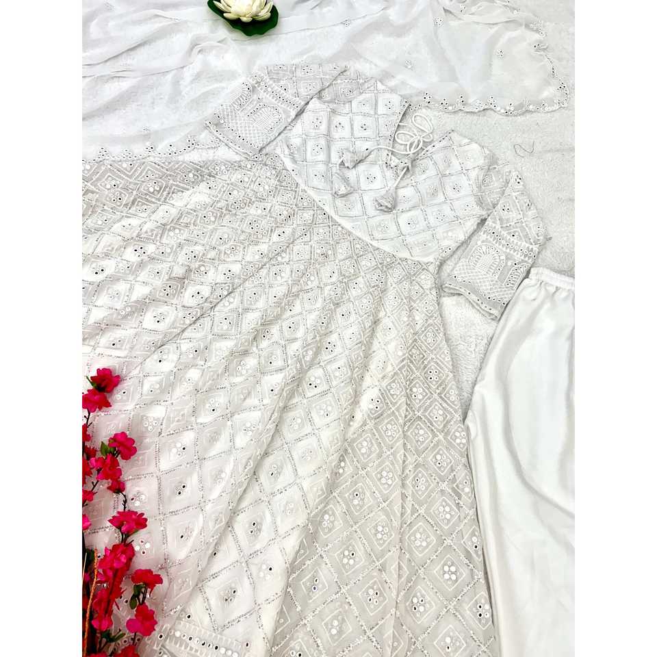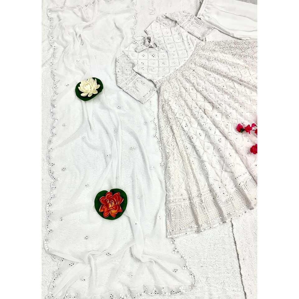 Robe Anarkali A-Line de créateur faite à la main avec pantalon et dupatta, taille empire, en tissu organza, pour tenue de soirée