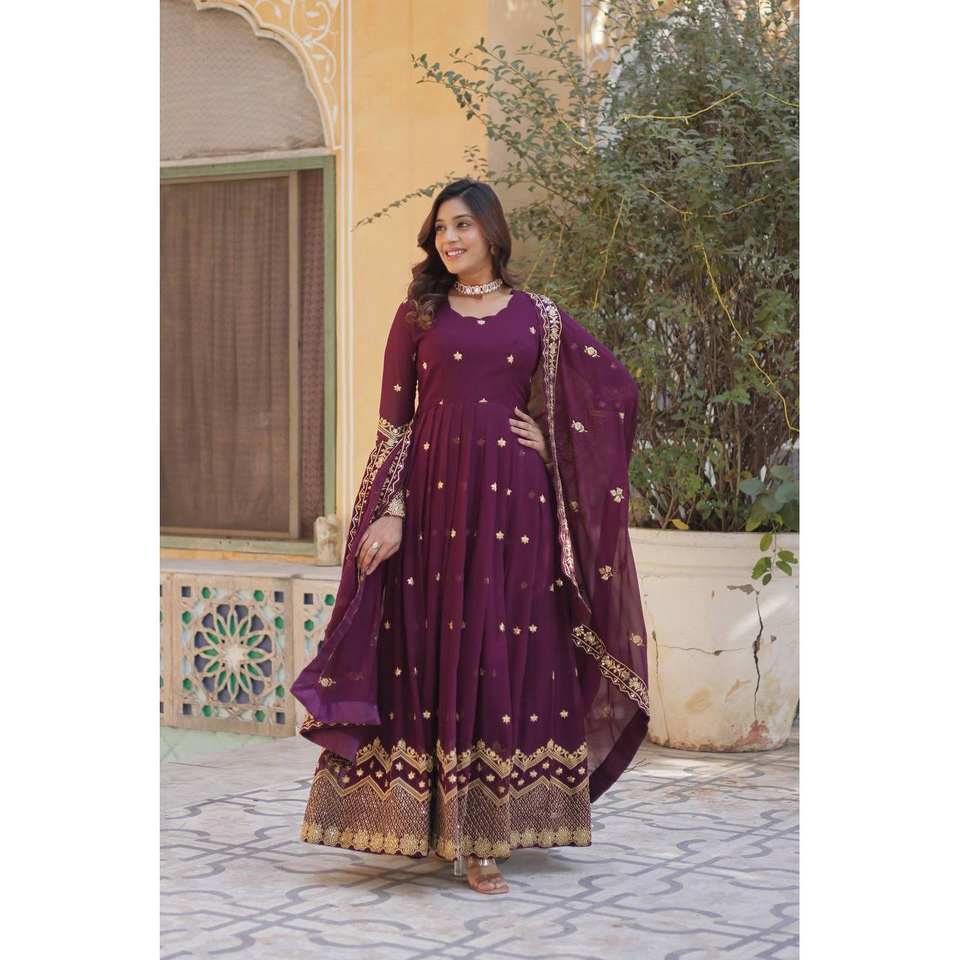 Robe trapèze de créateur faite à la main avec tissu en organza brodé, taille empire et dupatta et bas de robe ornés de sequins