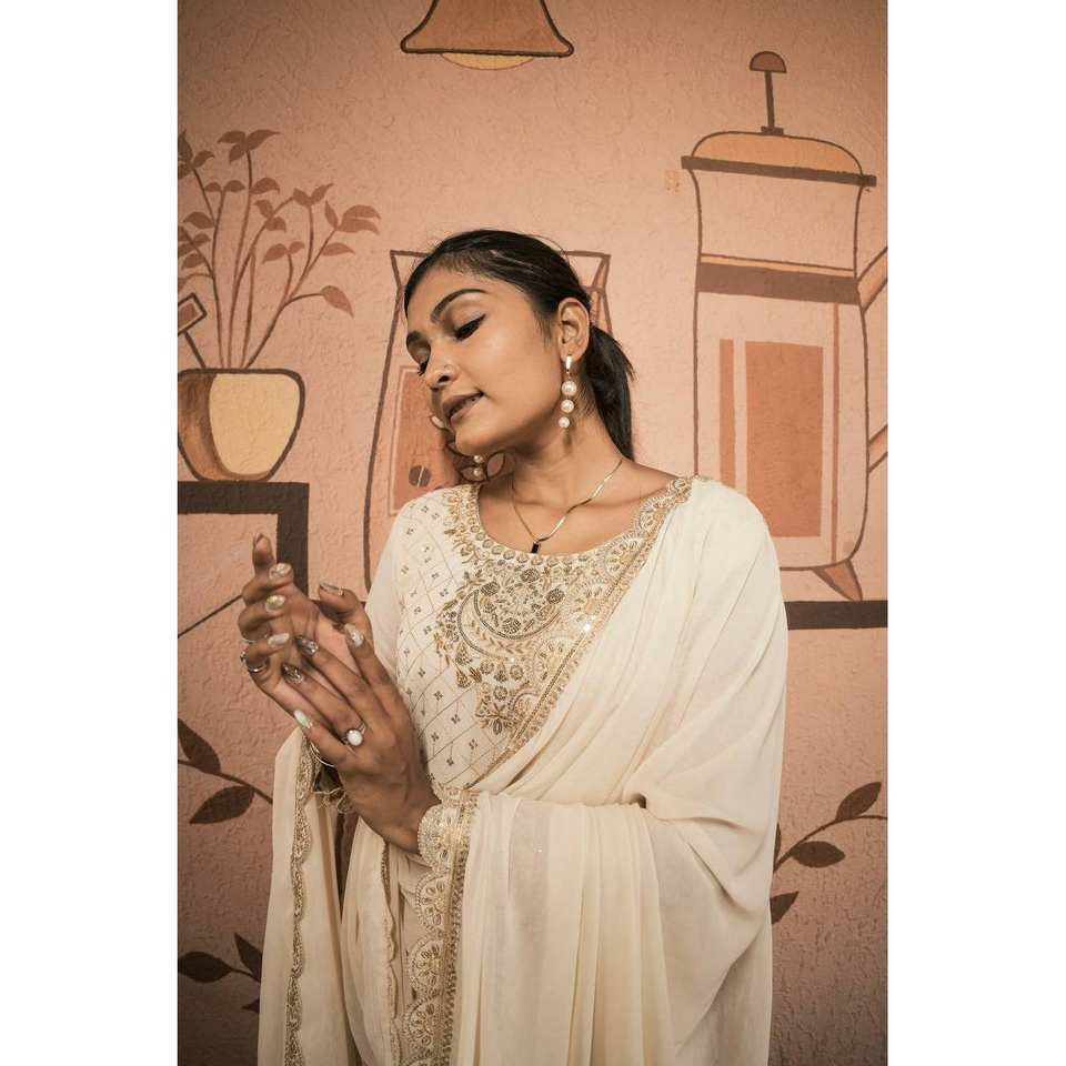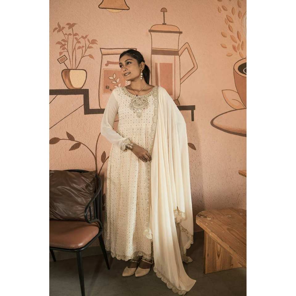 Robe trapèze de créateur faite à la main avec pantalon et dupatta en organza brodé pour soirée, taille XL