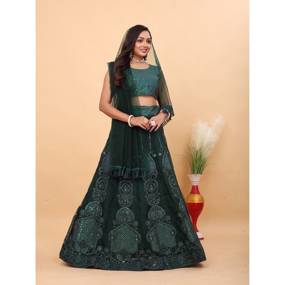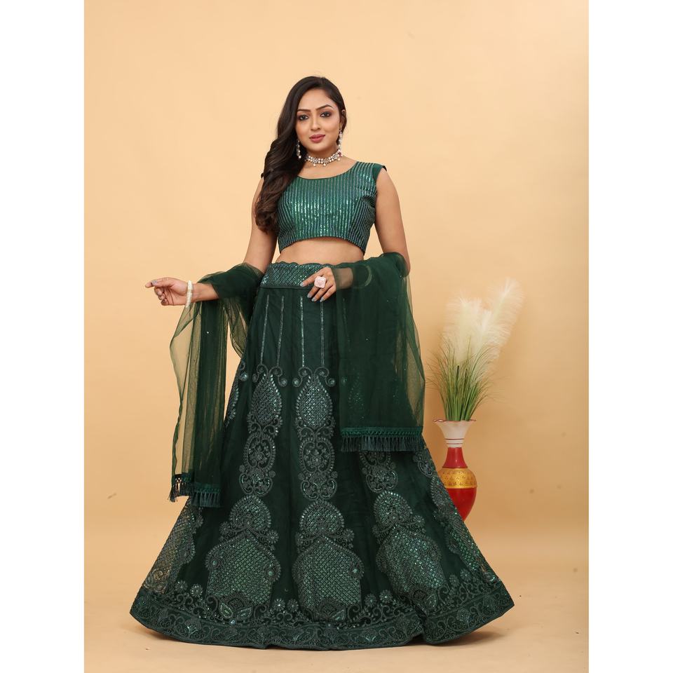 Lehenga Choli A-Line de créateur fait main pour les fêtes, avec un magnifique travail Zari, haut court et taille naturelle