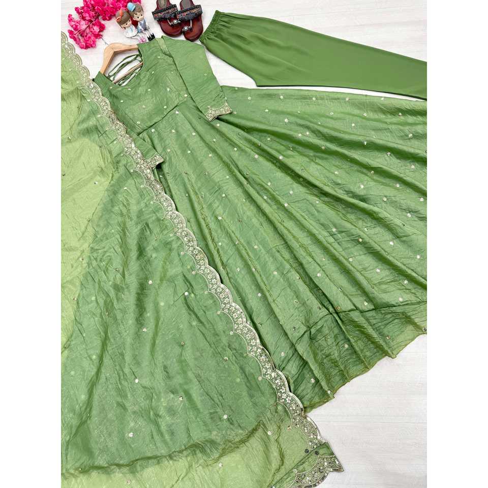 Robe de soirée trapèze de créateur faite à la main avec dupatta et bas en organza fantaisie, taille empire