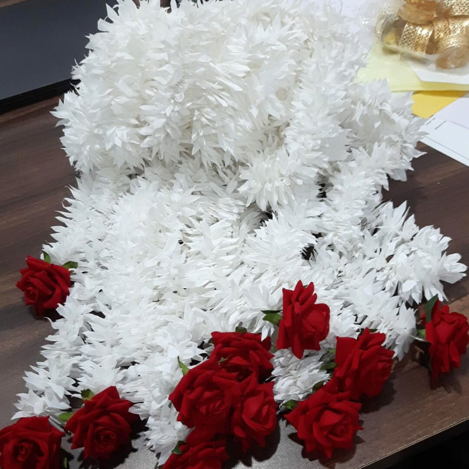 Fleur de jasmin artificielle faite à la main avec guirlande de roses guirlandes de créateurs de fleurs blanches et rouges pour la décoration de fête de mariage