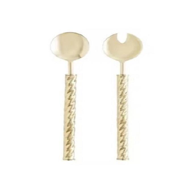 Vaisselle design faite à la main avec poignée en laiton au design unique Serveur à salade en acier inoxydable Laiton gaufré or poli