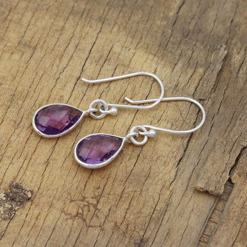 Boucles d'oreilles personnalisées pour femmes en argent sterling 925 améthyste pierres précieuses boucles d'oreilles pour femmes