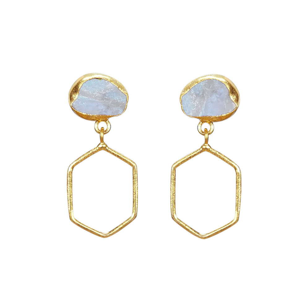 Boucles d'oreilles pendantes faites à la main en argent sterling 925 Unique arc-en-ciel pierre de lune cristal pierre précieuse Protection brute naturelle certifiée