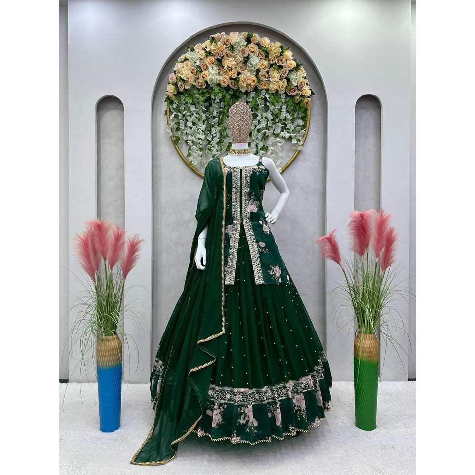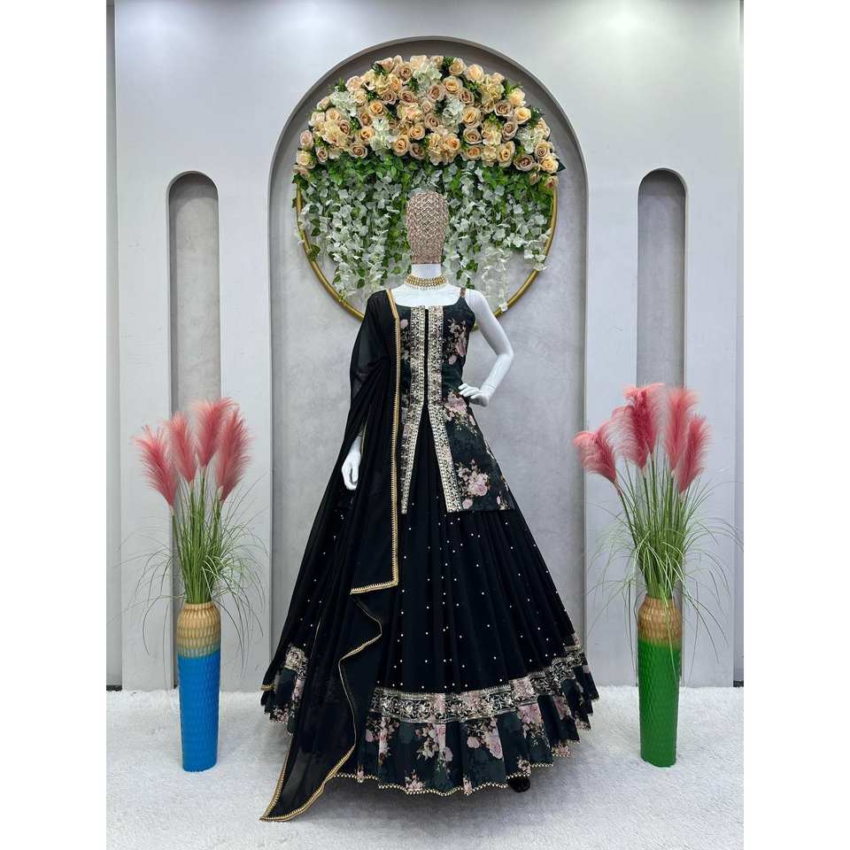 Lehenga A-Line Fait Main à Imprimé Floral de Créateur avec Dupatta, Taille Empire, en Tissu Organza, Tenue de Soirée