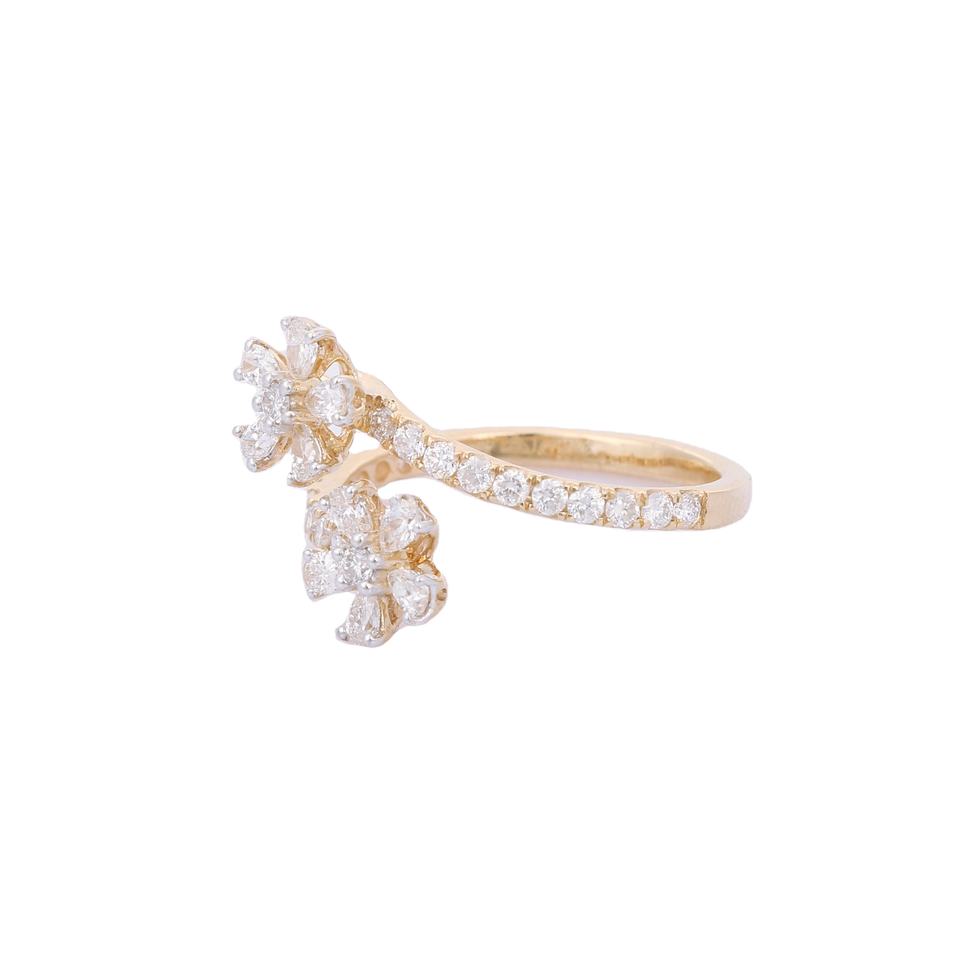 Bague de luxe en forme de fleur en diamant naturel fait à la main, bijoux de créateur, or jaune fin 14K, bague de fiançailles pour femmes
