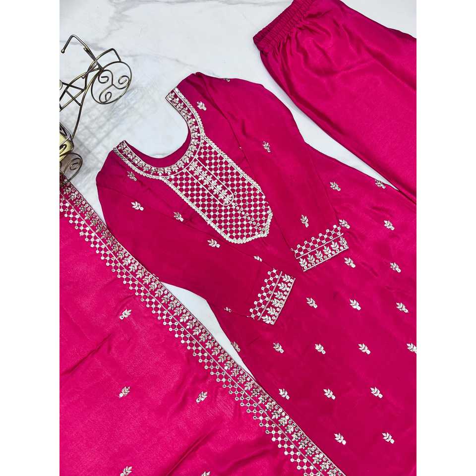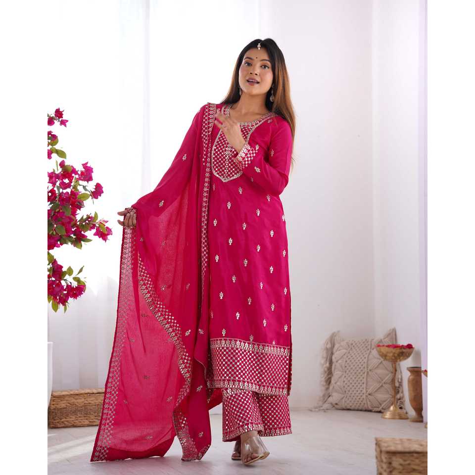Handmade Designer Party Wear Top Pants Dupatta Set with Elegant Lace Work Natural Waistline