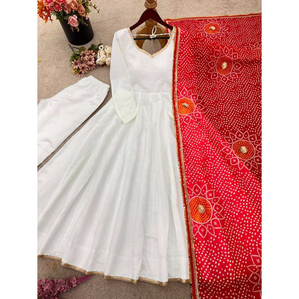 Robe de soirée trapèze à col en V, faite main, de créateur, en organza à imprimé floral, avec taille naturelle et dupatta à bordure en dentelle, pour les soirées ZSR