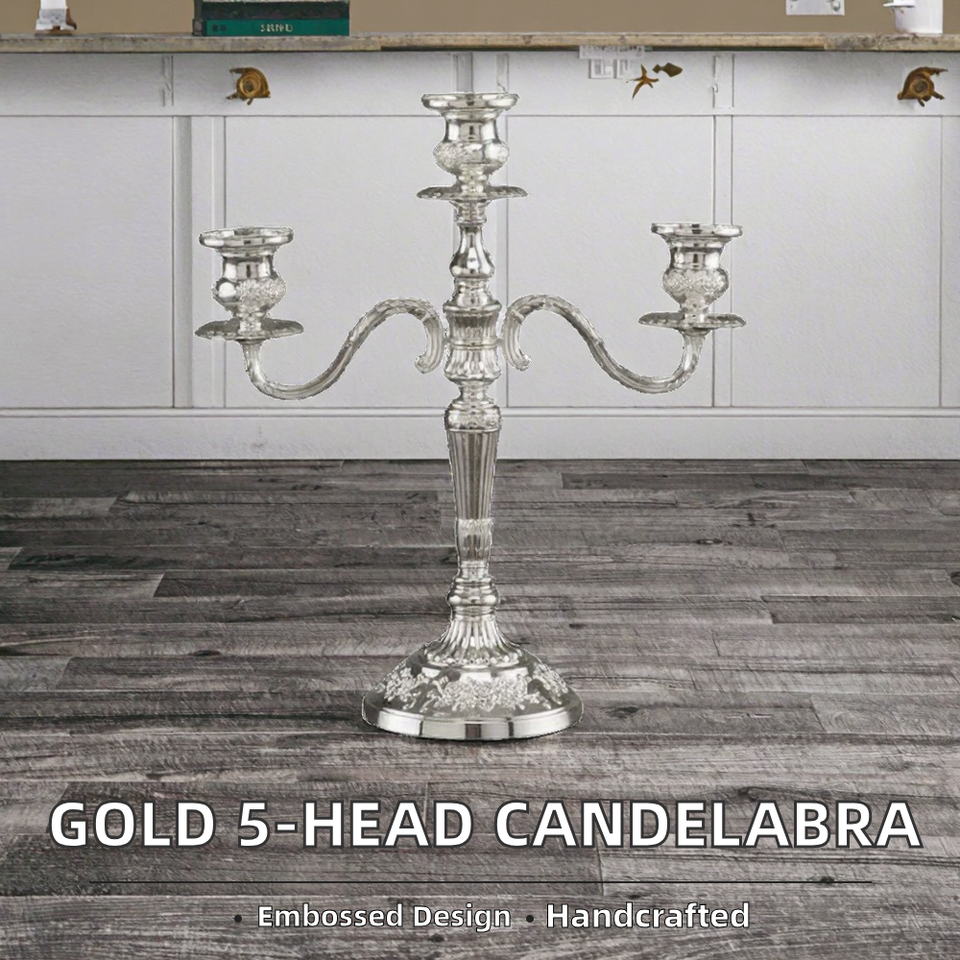 Candélabre de Noël en fer forgé à 5 têtes, 3 branches, embossé, fait main, durable, avec récipient en verre pour usage religieux