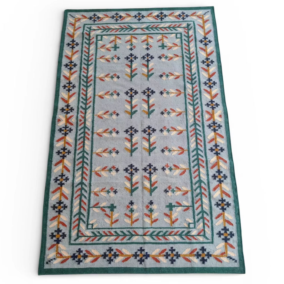 Tapis en laine fait main Durrie | Tapis géométrique multicolore abstrait tissé à la main | Tapis tissé plat moderne, écologique, antidérapant en PET