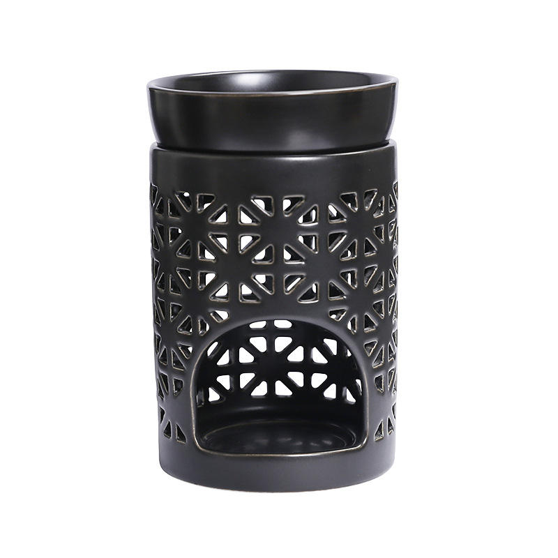 Porte-bougie chauffe-plat en porcelaine noire ajourée pour huiles essentielles