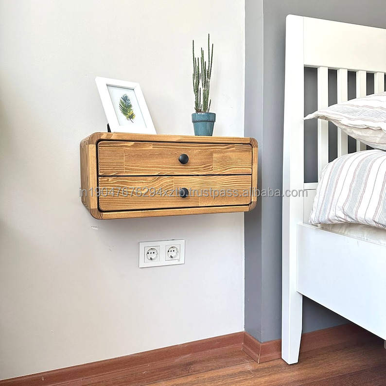 Table de chevet murale flottante écologique faite à la main, meuble de chambre en bois au design moderne, mobilier de maison