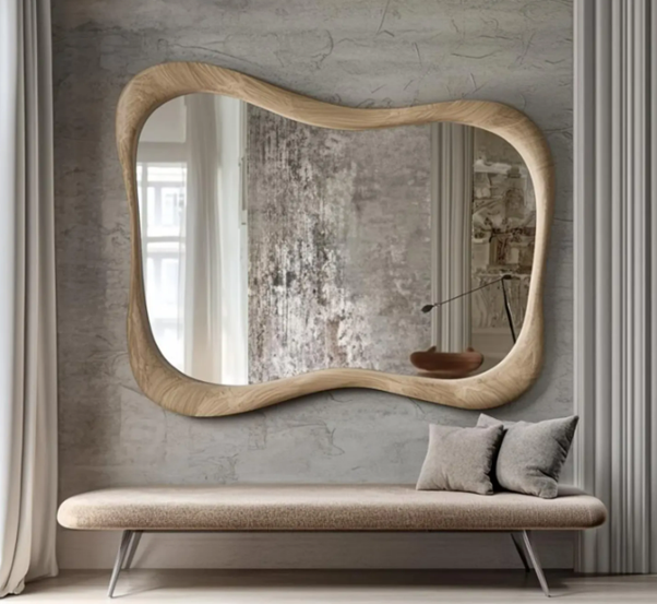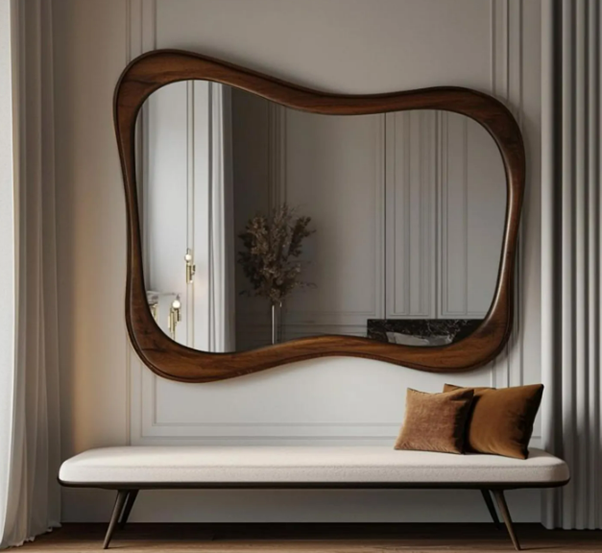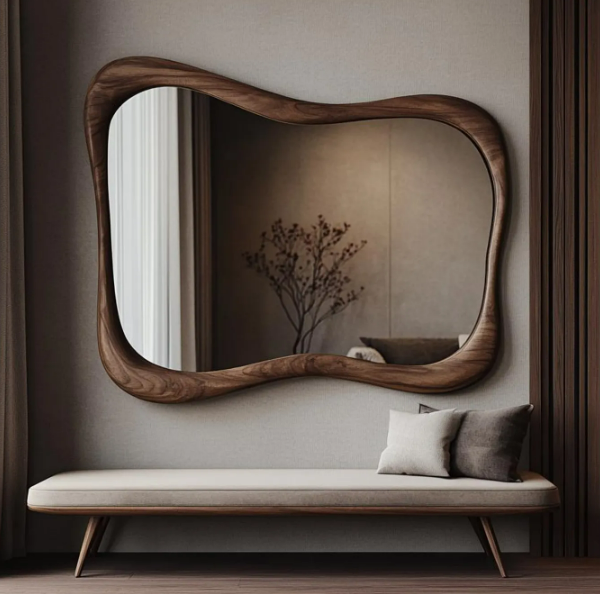 Handmade Eco-Friendly Lightweight Real Walnut Wooden Frame Vanity Mirror Modern Art Deco Style Asymmetrical Irregular Wavy