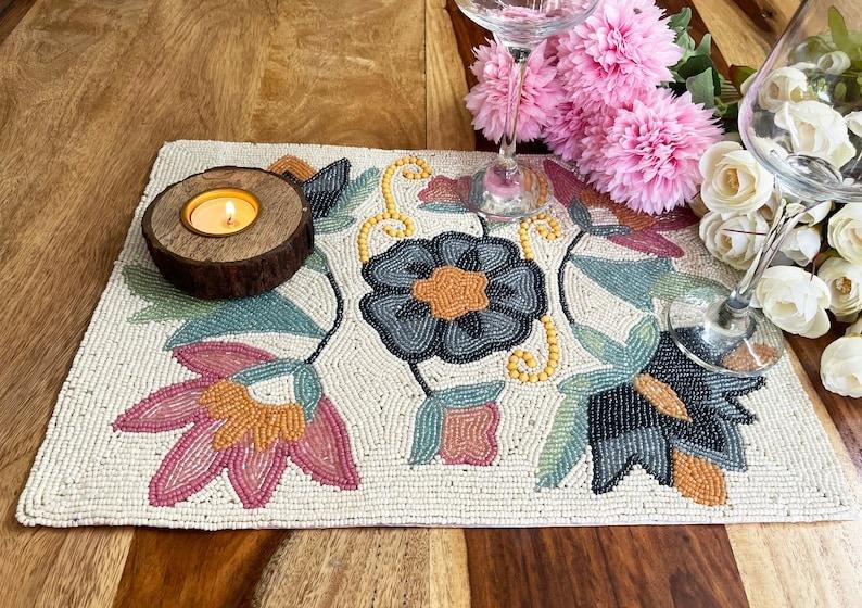 Sous-plat de table en nacre écologique fait à la main, style moderne, chemin de table, sous-plat de table en perles, sous-plats de table en perles magnifiques