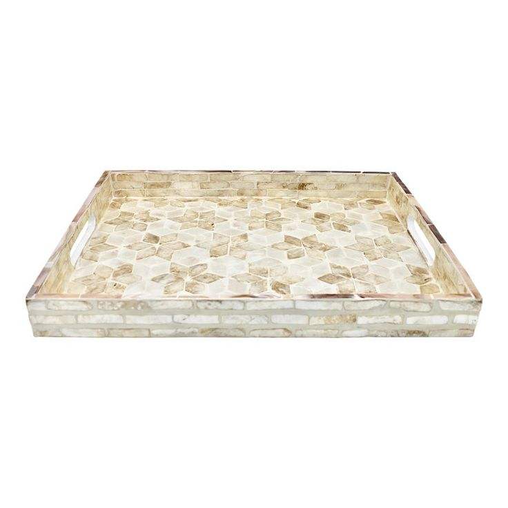 Handmade Eco-Friendly Mother of Pearl Cube Detail Rattan Tray Inspired by Vietnam Best Selling New Style Best Selling