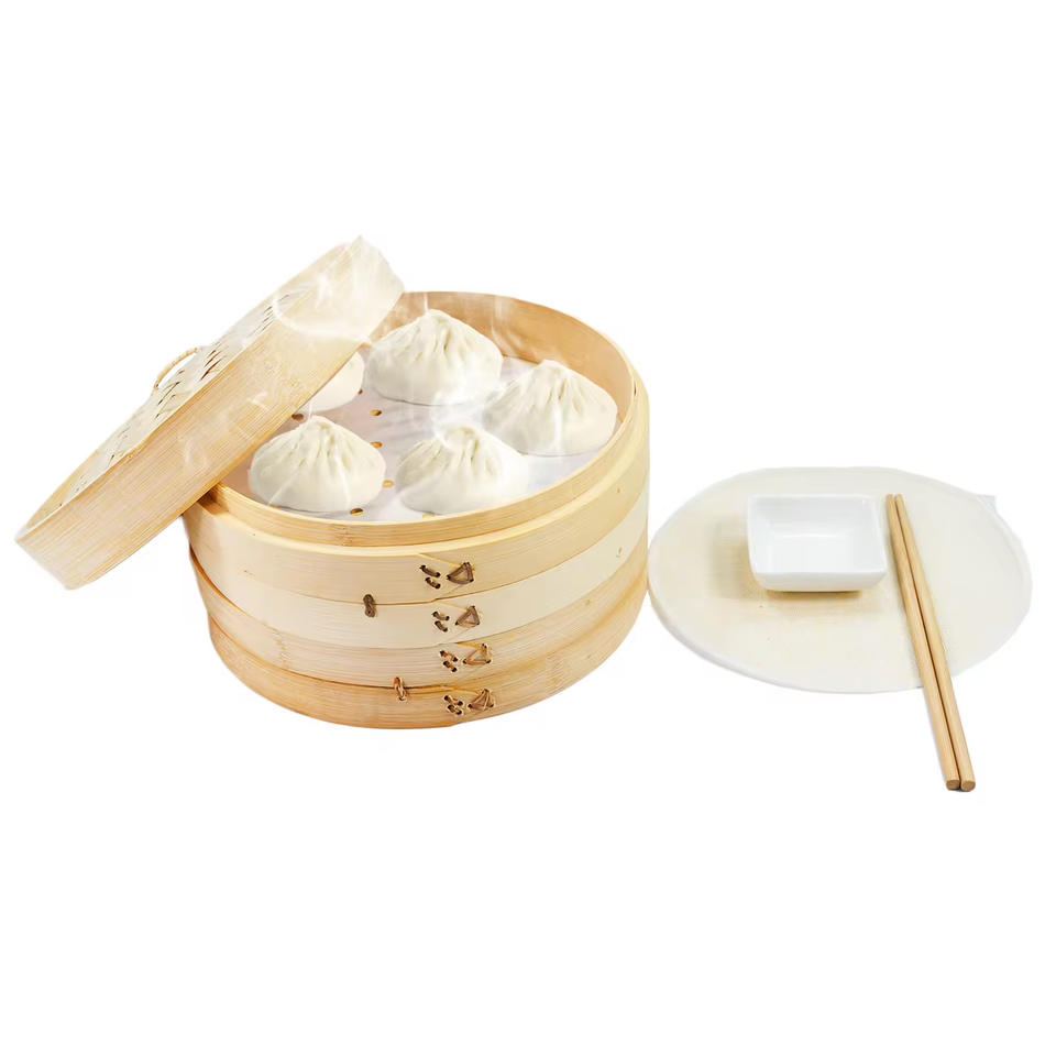 Ensemble de cuiseur à vapeur de cuisine traditionnelle chinoise en bambou naturel écologique fait à la main
