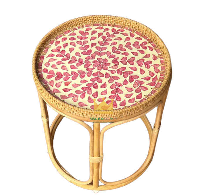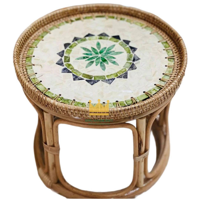 Table basse en rotin naturel écologique faite à la main avec motif nacre, design moderne, mobilier de salon, fournisseur Vietnamien