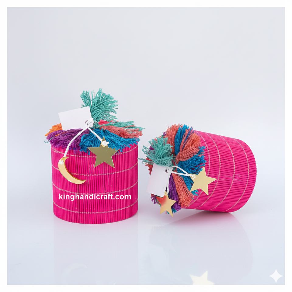 Panier et boîte de rangement en rotin rond naturel écologique fait à la main pour le Ramadan Eid - Organisateur décoratif moderne durable 2026