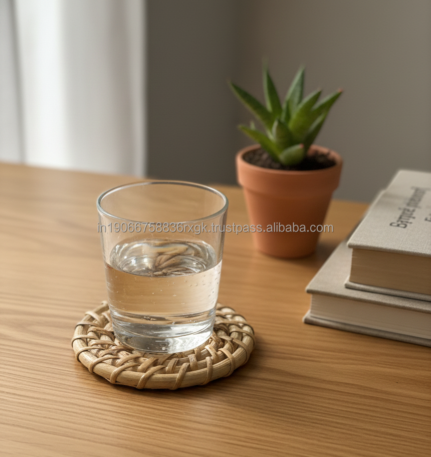 Sous-verre en rotin fait main, écologique, 4 pouces, finition naturelle, rustique, artisanal indien, décoration de table pour mariage, banquet, maison