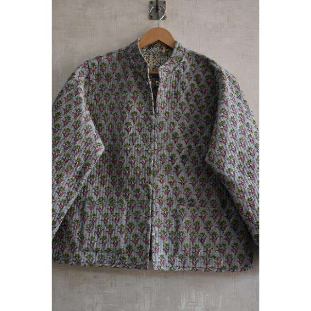 Veste d'hiver pour femme en coton tissé matelassé réversible écologique faite à la main, imprimé floral en blocs, manches longues, boutonnée