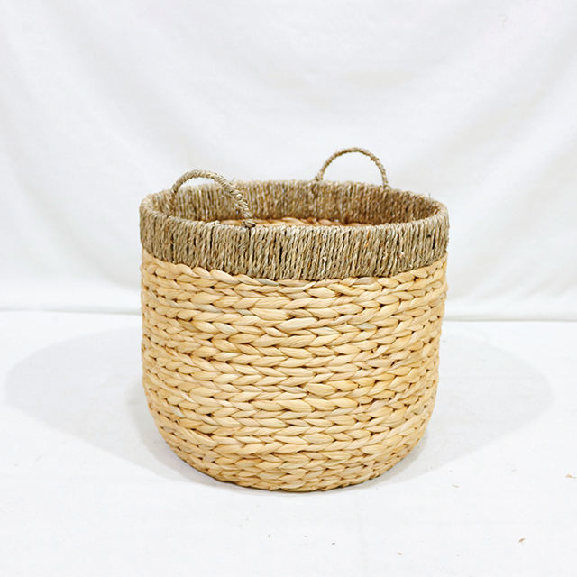 Paniers de rangement ronds en jacinthe d'eau, faits à la main, écologiques et rustiques, avec poignées, pour organiser le linge