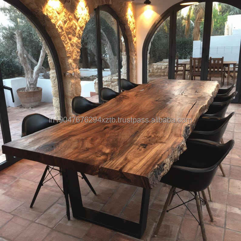 Table à manger carrée moderne en bois massif, écologique et faite à la main, avec pieds en métal, assemblée pour appartement ou bar