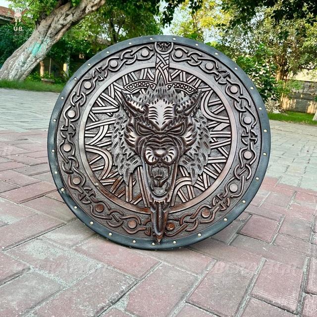 Handmade Eco-Friendly Viking Fenrir Cosplay Gift Set Wood Round Shield with Carved Wolf Design Norse Wall Decor for Him