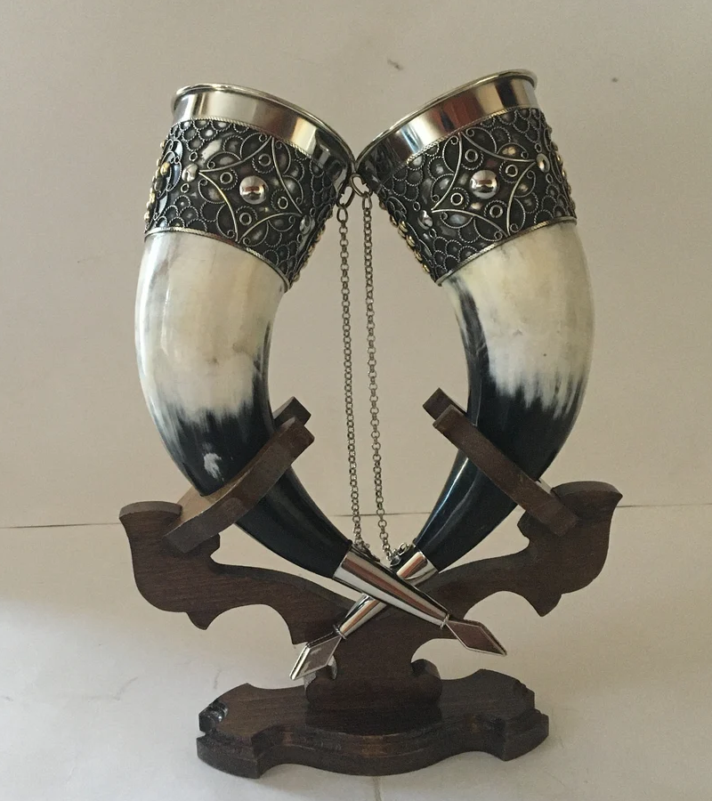 Handmade Eco-Friendly Viking Horn Polished Natural Craft with Flower Love Designs Metal Accents Party Barware Essential