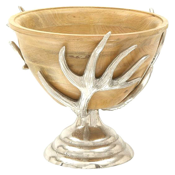 Bol de service rond en bois écologique fait à la main, avec support en métal argenté pour décor de mariage, bol de serveur pour salade de fruits