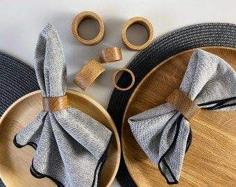 Anneaux de serviette en bois faits à la main, écologiques, finition lisse, marron classique, pour table à manger et fêtes