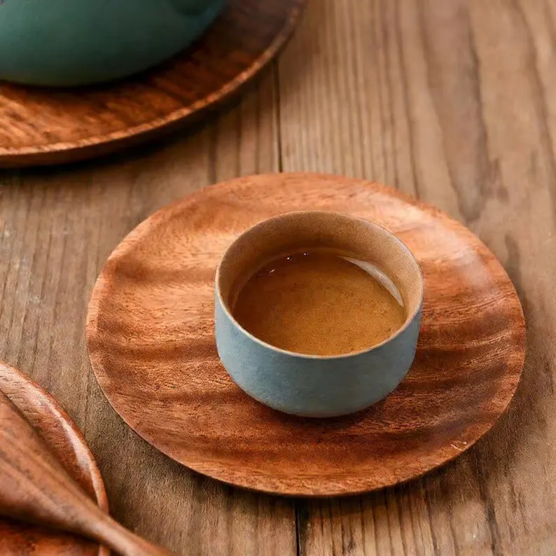Ensemble d'assiettes en bois écologiques faites à la main, style classique, plat de service rond, qualité supérieure - Compatible lave-vaisselle et micro-ondes